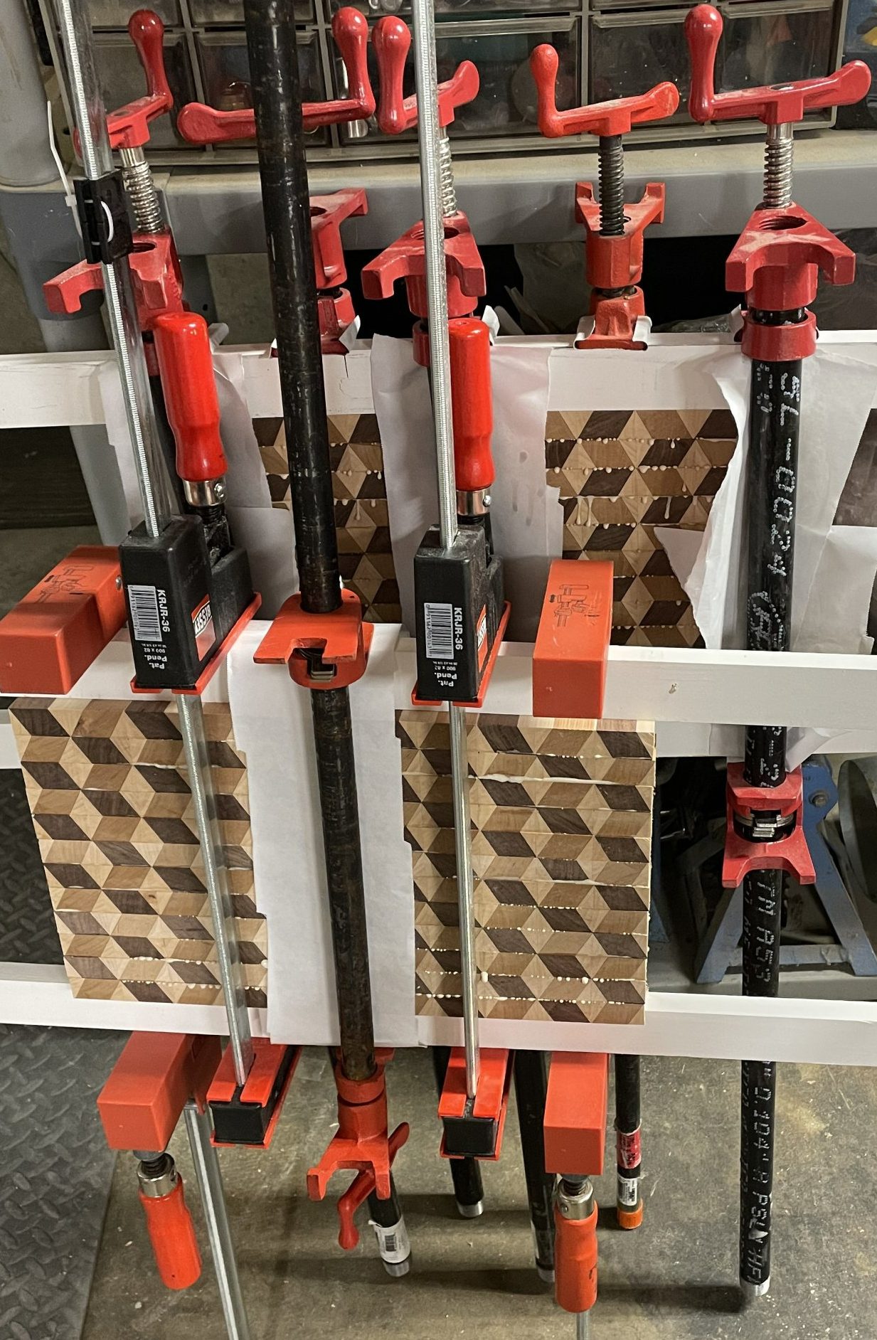 The end grain cutting board is the best to keep your knives sharp. My favorites give the illusion of three dimensions.